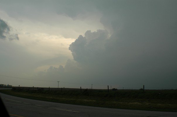 I brought my g/f (now wife) along for another chase with my friend Dave. I got to find out what was too close for her late in the day. I also found out I have no internet anywhere in NW OK, so if I ever chase there is going be doing it blind (they added service there in the winter of 07-08). We caught the first storm that tracked near Buffalo, OK. Looked pretty good for a few moments and gusted out before it made its way into KS, but it got its act back together as it traveled north into KS. After realizing we needed internet we dropped back to Woodward for an update.